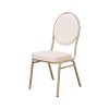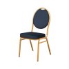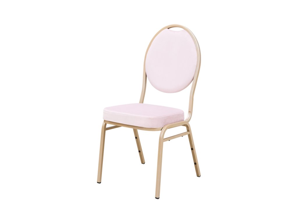 Povrchová úprava rámu je v elegantnej zlatej farbe s odolným práškovým lakovaním. Dodatočné kladivkové spracovanie zvyšuje odolnosť voči poškriabaniu a odlupovaniu, vďaka čomu si stolička zachováva estetický vzhľad aj pri častom stohovaní a prenášaní.